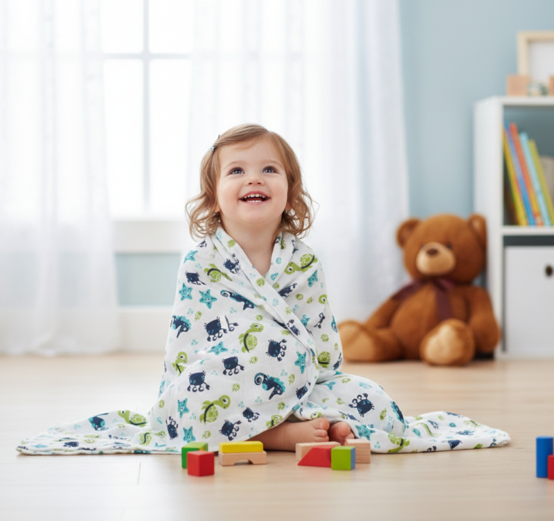 Tharunsha Elite Cotton Muslin Baby Swaddle (120 GSM, 200 TC) – AZO-Free Car Print, Soft & Safe for Newborns to 18 Months
