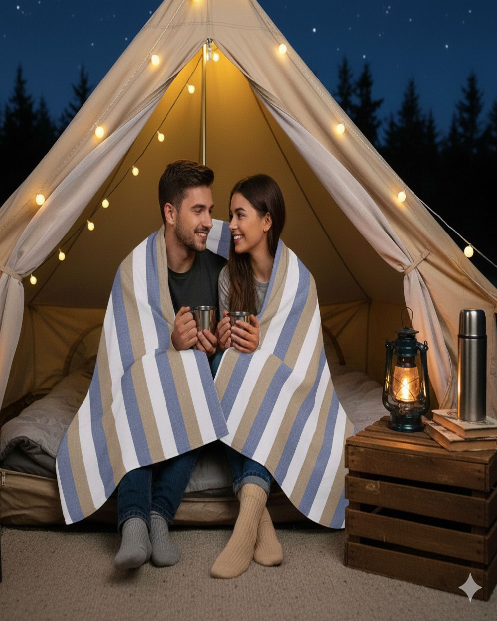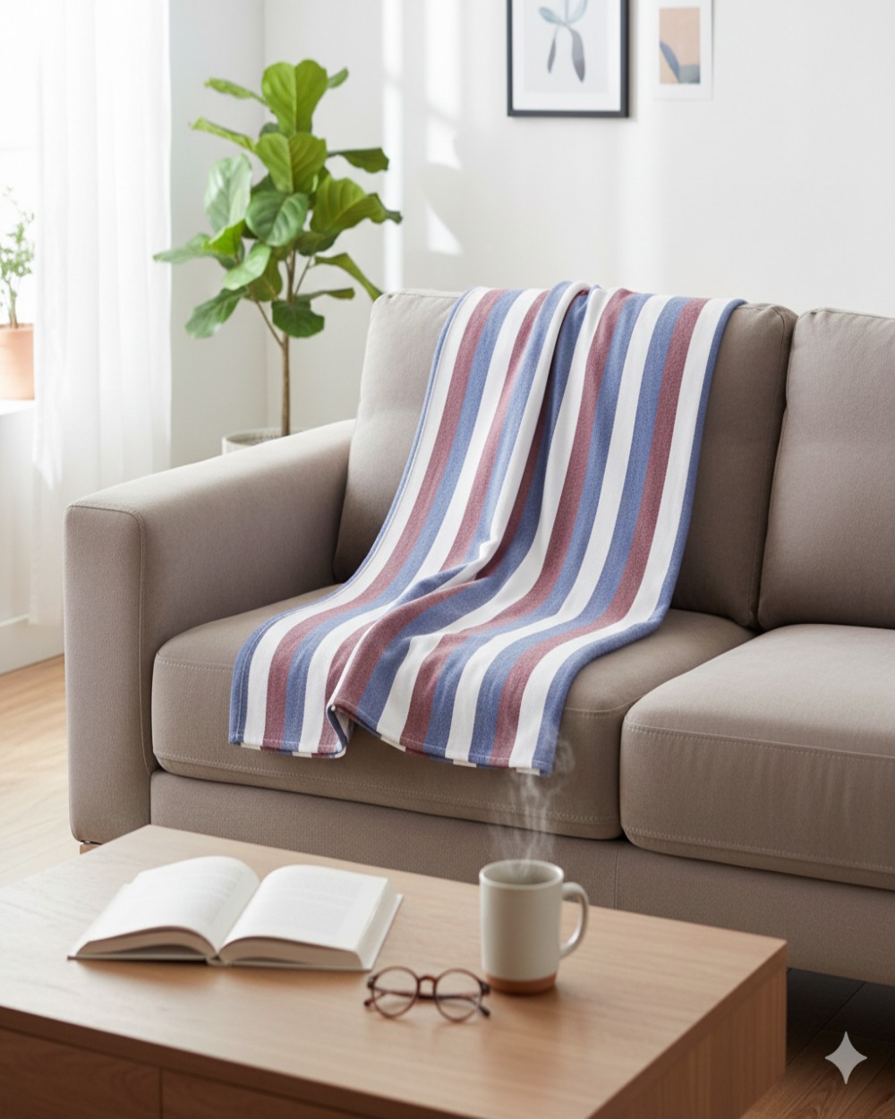 Wrap yourself in comfort with the Tharunsha Elite 100% Pure Cotton Blanket, expertly crafted by skilled weavers of Tamil Nadu, whose families have perfected the art of weaving for generations. This heritage craftsmanship ensures superior quality, durability, and timeless style.